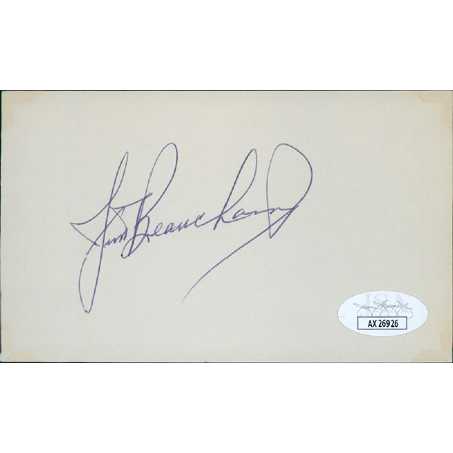 Signed Jim Beauchamp 3x5 index card in black ink. This item has been certified by James Spence Authentication (JSA) with sticker affixed to item and matching card.