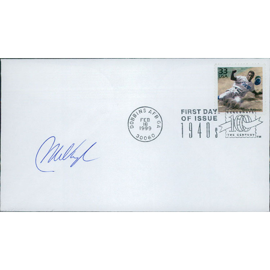 Signed Mo Vaughn Jackie Robinson Stamped Envelope Cachet in blue pen. This item has been certified by James Spence Authentication (JSA) with sticker on item and matching card.