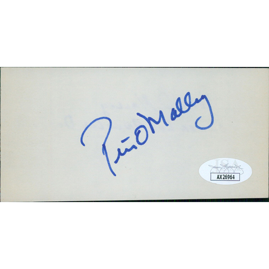 Signed Peter O'Malley 2.5x5 Index Card in blue sharpie. This item has been certified by James Spence Authentication (JSA) with sticker affixed to item and matching card.