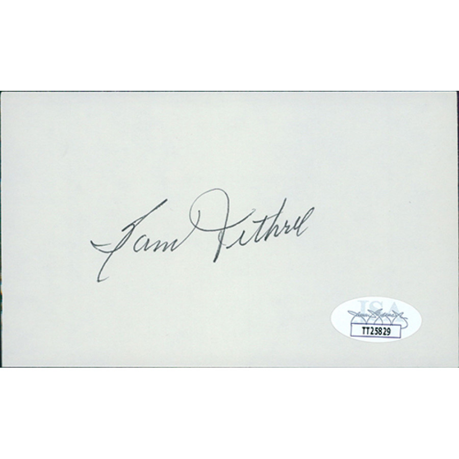 Signed Sam Jethroe 3x5 Index Card in black ink. This item has been certified by James Spence Authentication (JSA) with sticker on item and matching card.