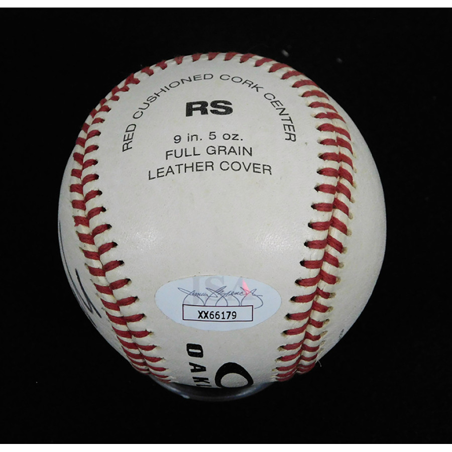 Signed Mike Trout Wilson Oakley Baseball in black sharpie on the side panel. The signature has light fading to it and the ball has some spotting/toning to it. This item has been certified by James Spence Authentication (JSA) with sticker affixed to item matching letter of authenticity.