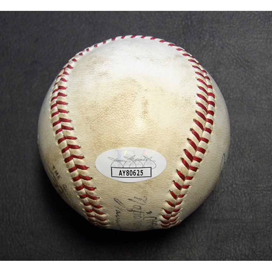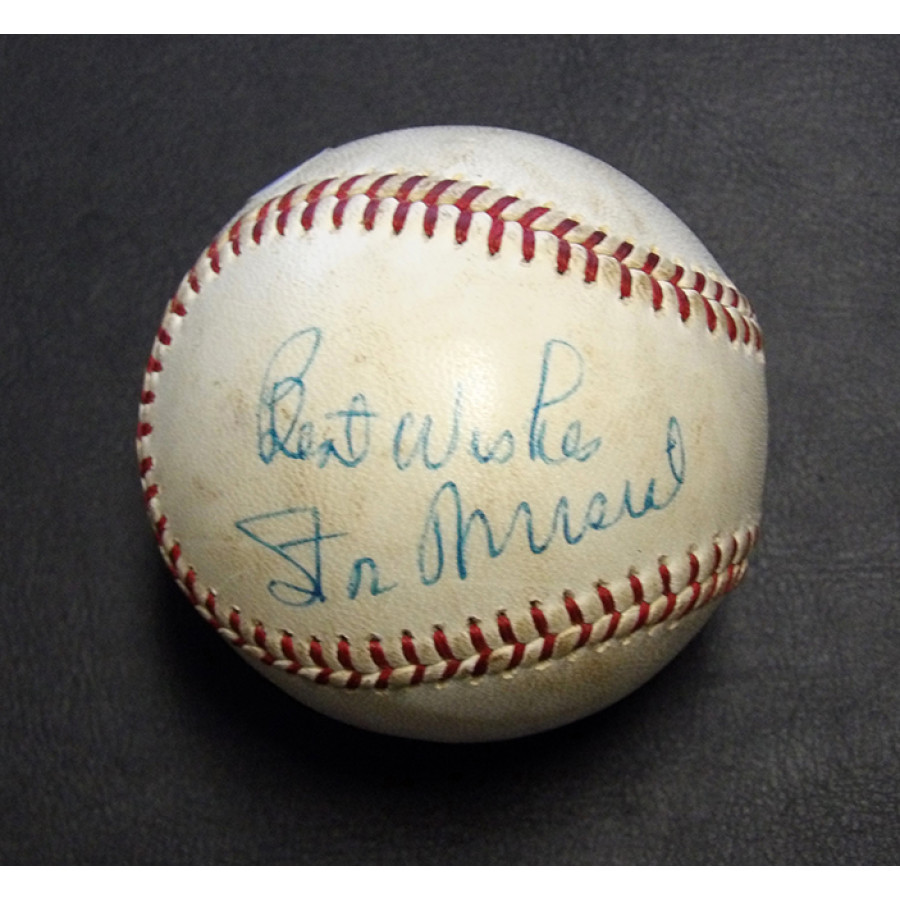 Signed Stan Musial Spalding Official National League Baseball in blue pen on the side panel. The ball does have some spotting/toning to it. This item has been certified by James Spence Authentication (JSA) with sticker affixed to item and matching card.
