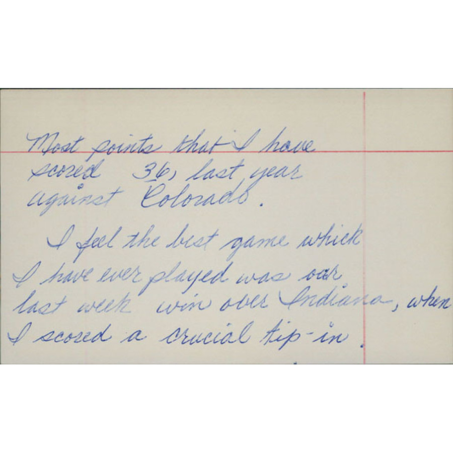 Signed Bob Boozer 3x5 index card in blue ink with inscription. Also goes onto another index card and will be included. This item has been certified by James Spence Authentication (JSA) with sticker on item and matching card.