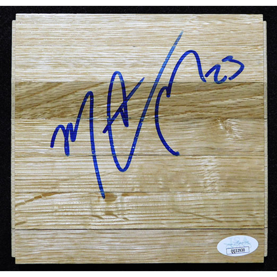 Signed Marcus Camby 6x6 floorboard in blue sharpie. This item is certified by James Spence Authentication (JSA) with sticker affixed to item and matching card.