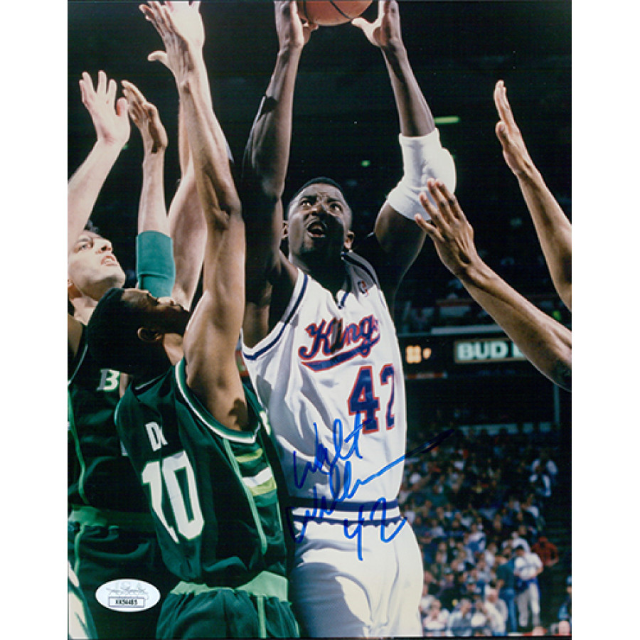 Signed Walt Williams Sacramento Kings 8x10 glossy photo in blue sharpie. This is certified by James Spence Authentication (JSA) with sticker affixed to item and matching card.