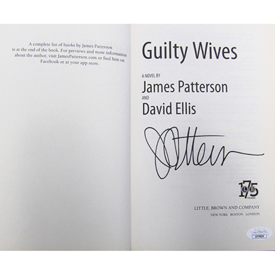 Signed James Patterson Guilty Wives first edition hardcover book in black ink on the inside cover page. The book is in used condition. This item is certified by James Spence Authentication (JSA) with sticker affixed to item and matching card.