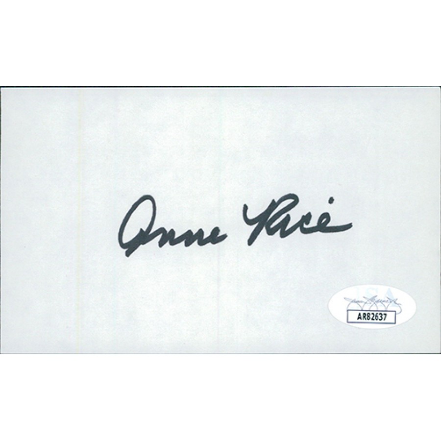 Signed Anne Rice 3x5 index card in black sharpie. This item has been certified by James Spence Authentication (JSA) with sticker affixed to item and matching card.
