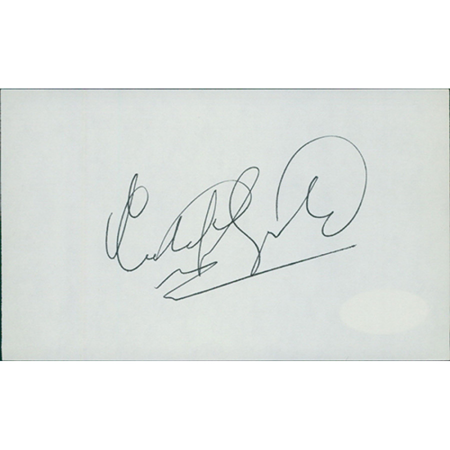 Signed Carlton Carpenter 3x5 index card in black ink. This item has been certified by James Spence Authentication (JSA) with sticker affixed to item and matching card.