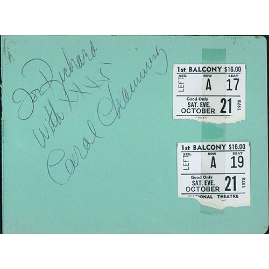 Signed Carol Channing 4x5.5 Album Page in pen personalized "For Richard". This item has been certified by James Spence Authentication (JSA) with sticker affixed to item and matching card.