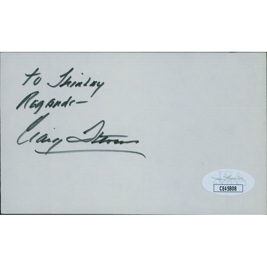 Signed Craig Stevens 3x5 index card in black ink personalized "To Neil". This item has been certified by James Spence Authentication (JSA) with sticker affixed to item and matching card.