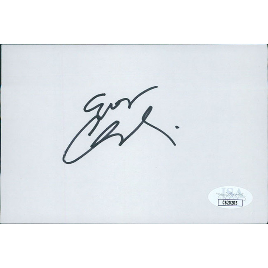 Signed Ever Carradine 4x6 index card in black sharpie. This item has been certified by James Spence Authentication (JSA) with sticker affixed to item and matching card.