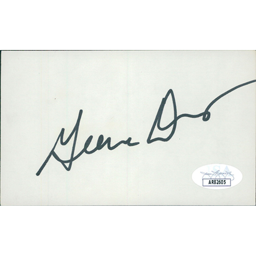 Signed Geena Davis 3x5 index card in black sharpie. This item has been certified by James Spence Authentication (JSA) with sticker on item and matching card.