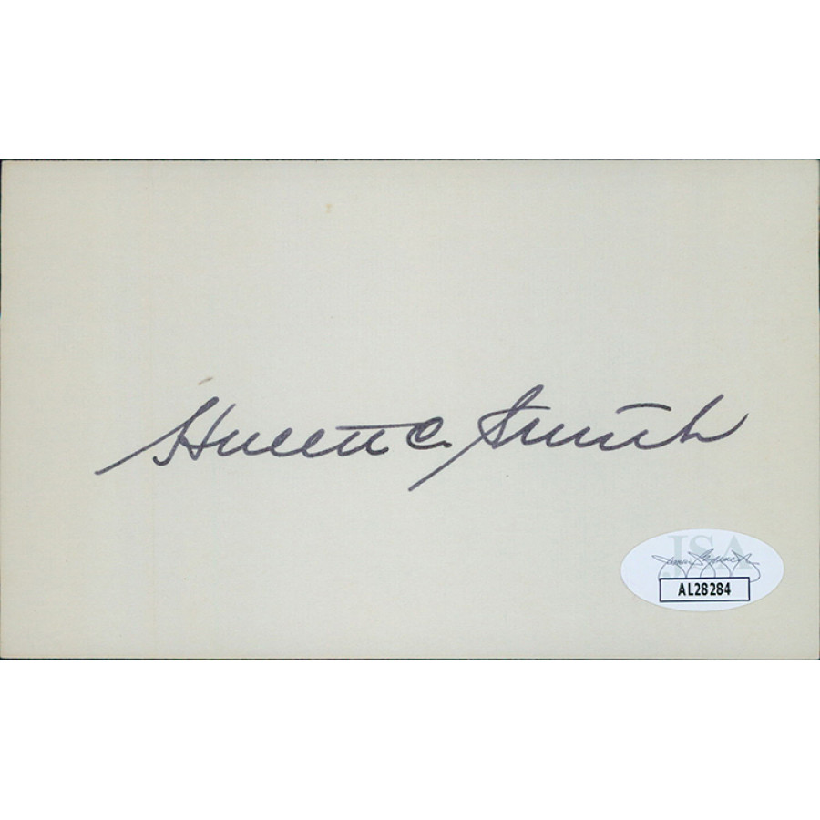 Signed Hulett Smith 3x5 index card in black ink. This item has been certified by James Spence Authentication (JSA) with sticker affixed to item and matching card.