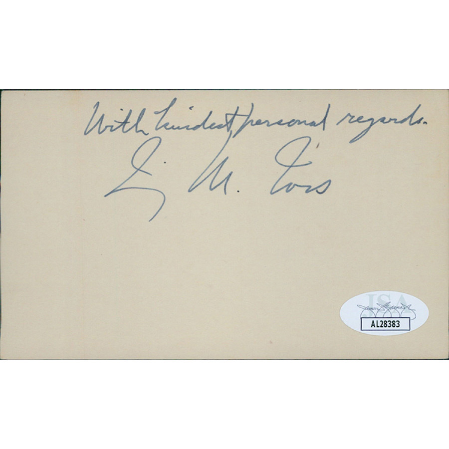 Signed Irving Ives 3x5 index card in black ink. This item has been certified by James Spence Authentication (JSA) with sticker affixed to item and matching card.