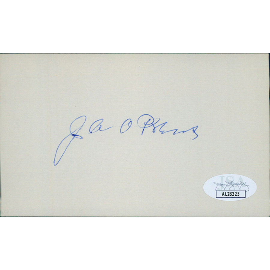 Signed Jacob Aall Ottesen Preus 3x5 index card in blue ink. This item has been certified by James Spence Authentication (JSA) with sticker affixed to item and matching card.