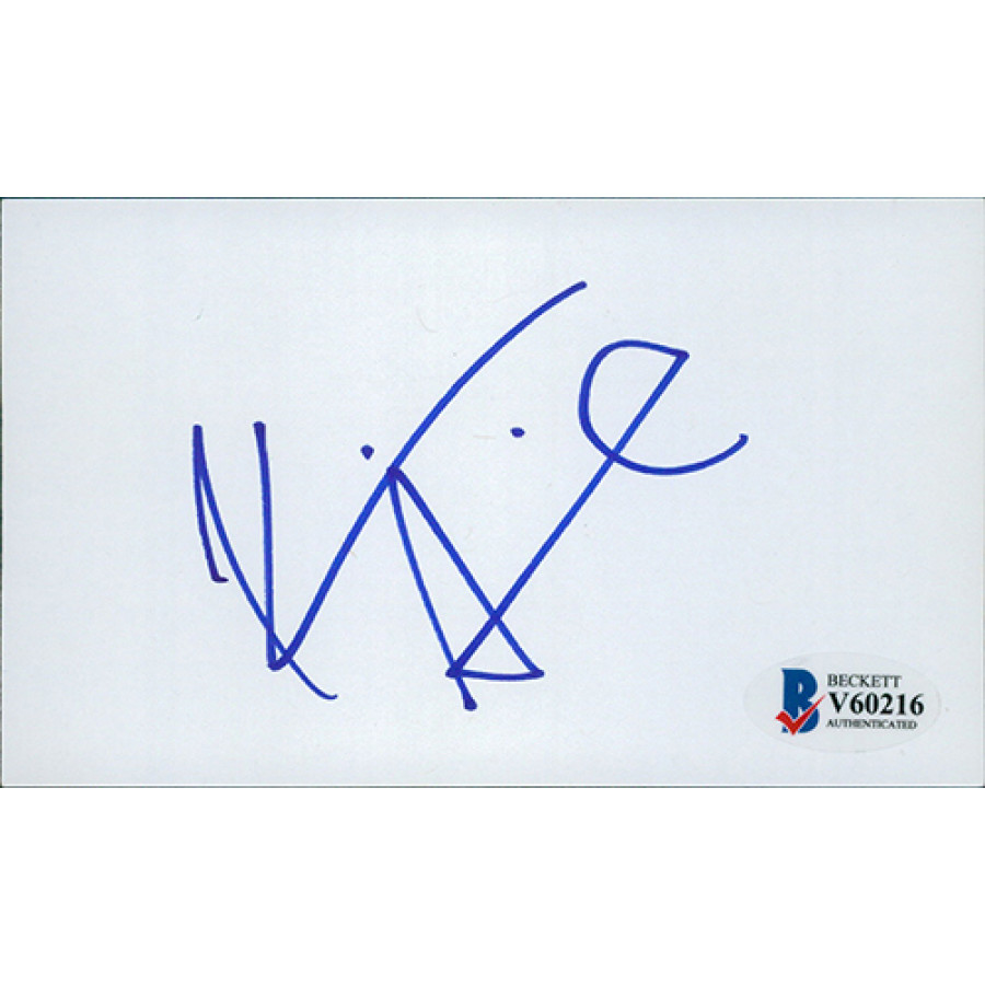 Signed Kevin Smith 3x5 Index Card in blue sharpie. This item has been certified by Beckett Authentication (BAS) with sticker affixed to item and matching card.
