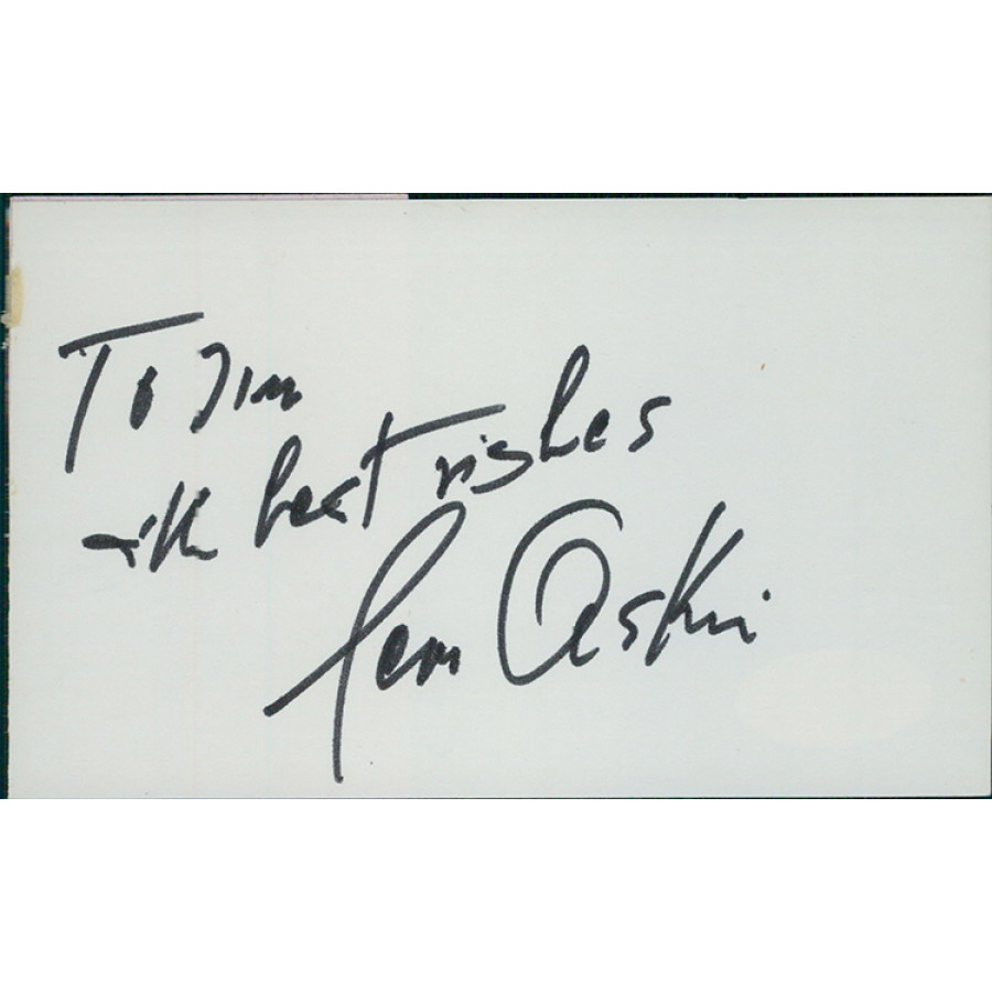 Signed Leon Askin 3x5 index card in black sharpie personalized. This item has been certified by James Spence Authentication (JSA) with sticker affixed to item and matching card.