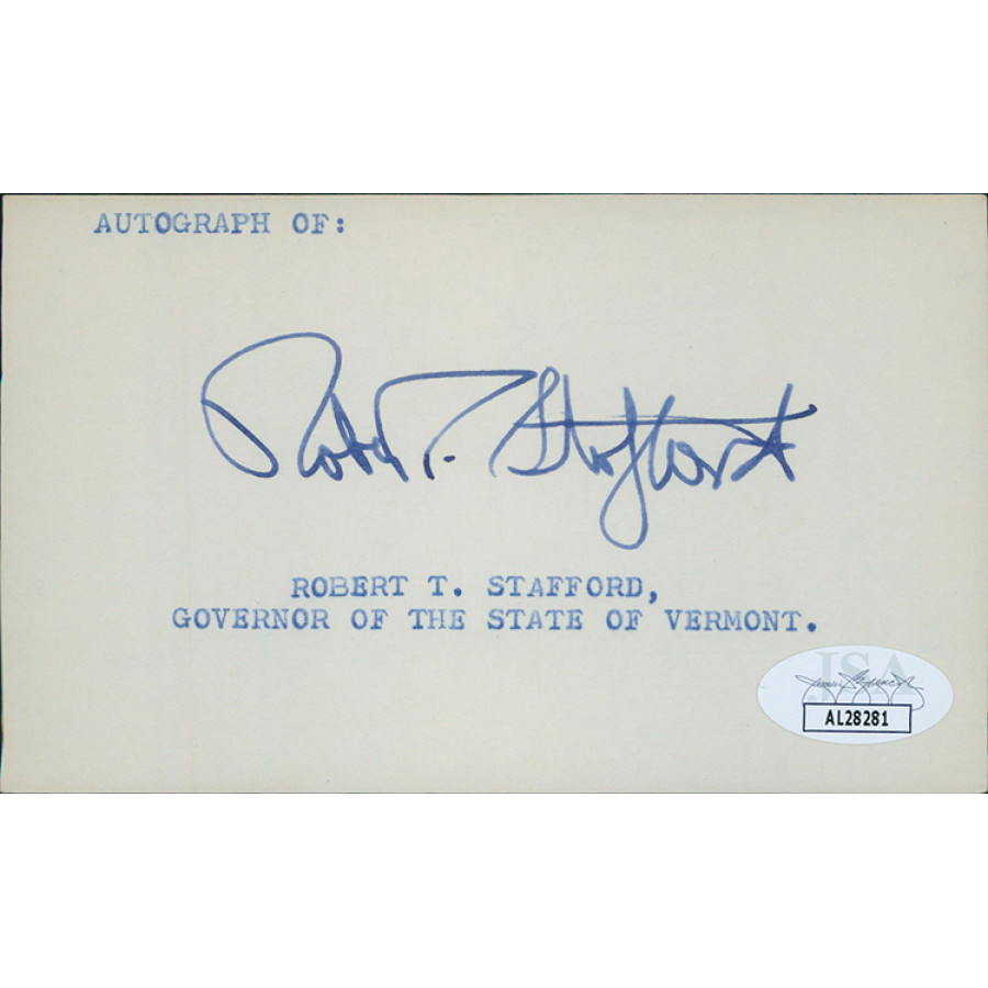 Robert Stafford Vermont Governor Senator Signed 3x5 Index Card JSA Authenticated