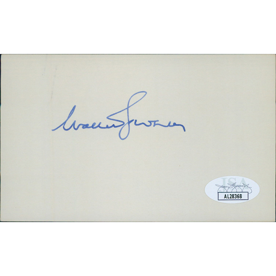 Signed Walter Kohler 3x5 index card in blue ink. This item has been certified by James Spence Authentication (JSA) with sticker affixed to item and matching card.