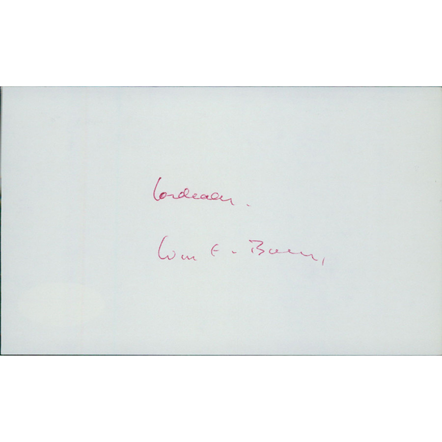 Signed William F. Buckley 3x5 index card in red ink. This item has been certified by James Spence Authentication (JSA) with sticker on item and matching card.