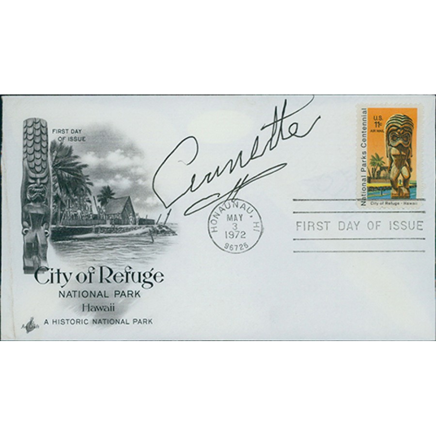 Signed Annette Funicello First Day Issue City of Refuge Hawaii Envelop in black ink. This item has been certified by James Spence Authentication (JSA) with sticker affixed to item and matching card. The envelope does show some wear.