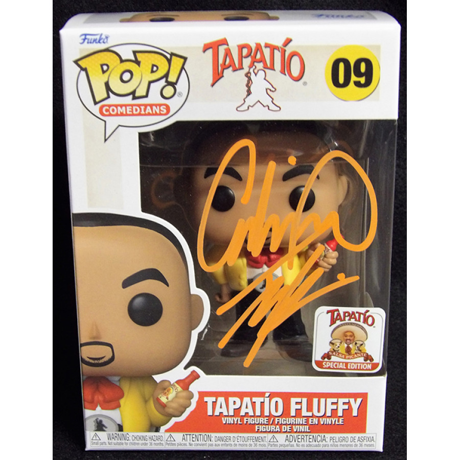 Signed Gabriel "Fluffy" Iglasias Funko Pop 9 Comedians Tapatio Fluffy Fluffy shop exclusive in orange paint pen. This item has been certified by James Spence Authentication (JSA) with sticker affixed to item and matching card.