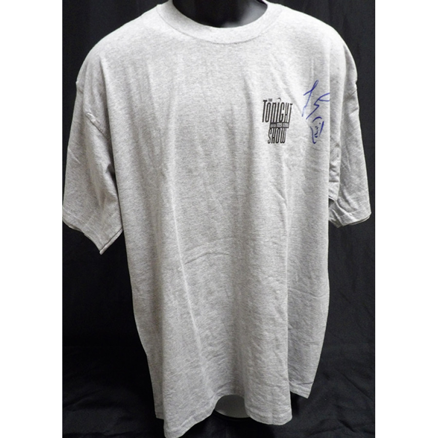 Signed Jay Leno The Tonight Show XL shirt in blue sharpie on the front. This item is certified by James Spence Authentication (JSA) with sticker affixed to item and matching card.