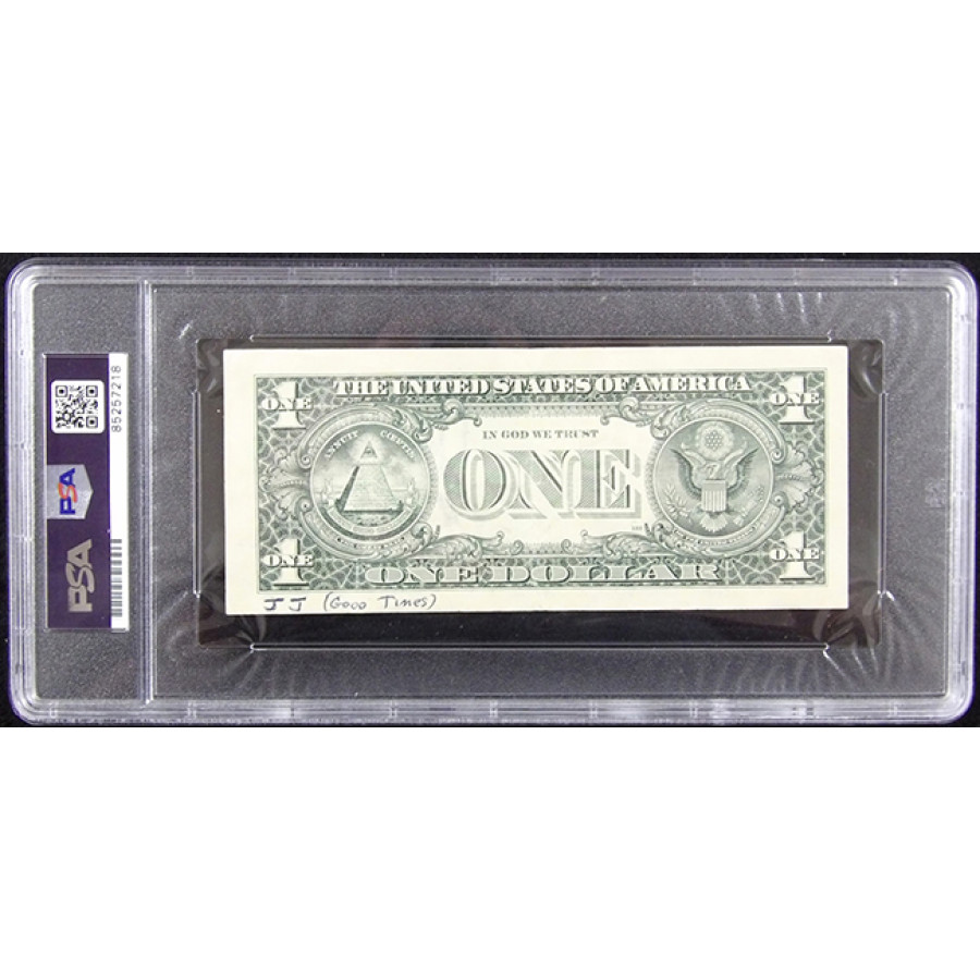 Signed Jimmie Walker one dollar bill in black sharpie. This item has been certified by Professional Sports Authenticator (PSA) encapsulated.