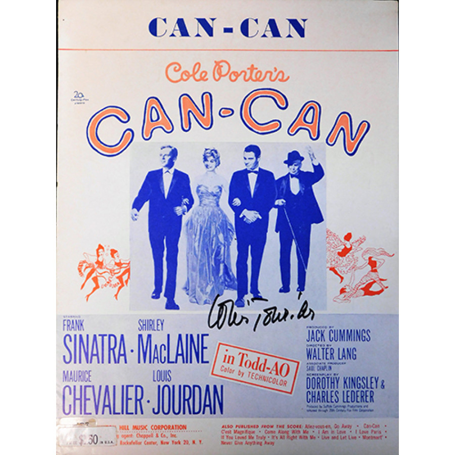 Signed Louis Jourdan Can-Can sheet music in black sharpie. This item has been authenticated by James Spence Authentication (JSA) with sticker affixed to item and matching card. This item is in used condition with minor wear and tear.