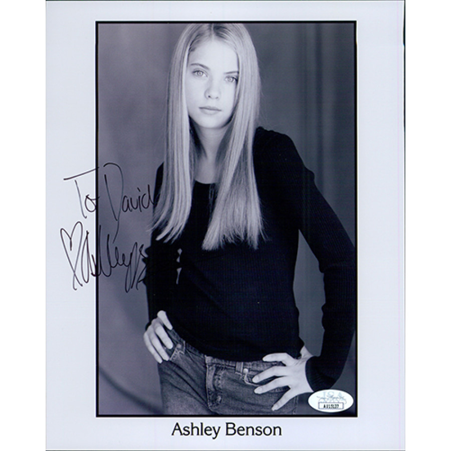 Signed Ashley Benson 8x10 matte finish photo in black ink personalized "To David". This item has been certified by James Spence Authentication (JSA) with sticker affixed to item and matching card.