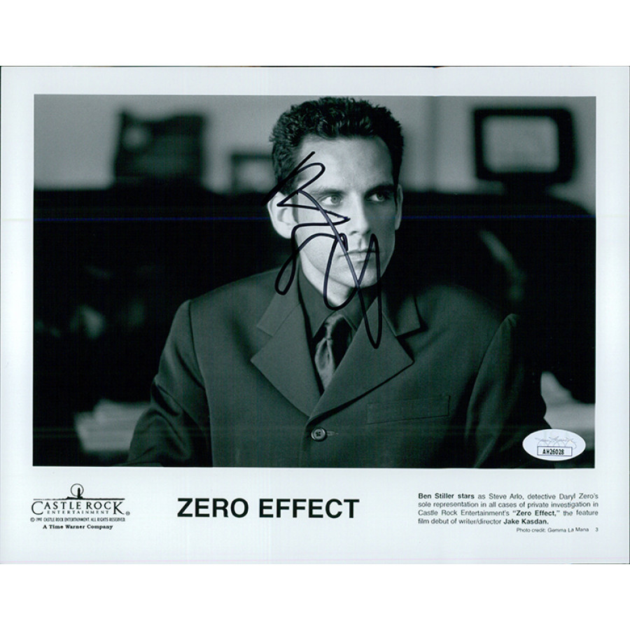 Signed Ben Stiller Zero Effect 8x10 glossy finish promo photo in black sharpie. This item has been certified by James Spence Authentication (JSA) with sticker on item and matching card.