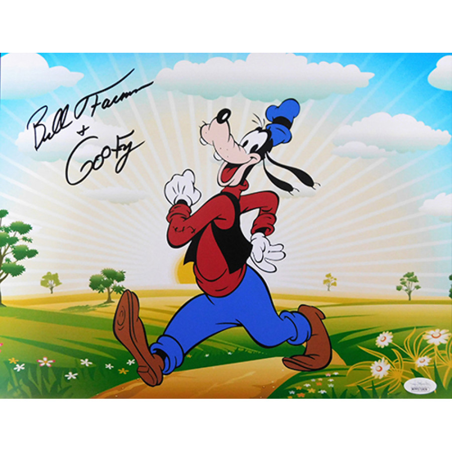 Signed Bill Farmer Goofy 11x14 matte photo in black sharpie. This autograph has been witnessed and certified by James Spence Authentication (JSA) with sticker affixed to item and matching card.
