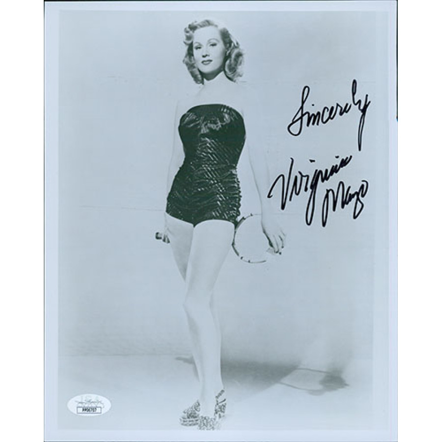Signed Virginia Mayo 8x10 glossy photo in black sharpie. This item has been certified by James Spence Authentication (JSA) with sticker affixed to item on the back and matching card.