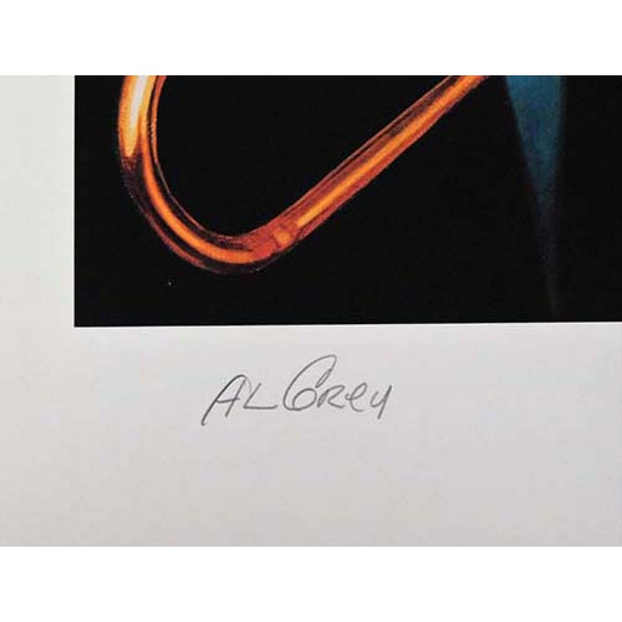 Signed Al Grey 16x20 Lithograph by Ron Lewis. It is also autographed by Ron Lewis the artist. The Lithograph is limited and numbered to 300. This item is certified by James Spence Authentication (JSA) with sticker affixed to item and matching card. NOTE: There maybe some small dirt marks and dented corners.
