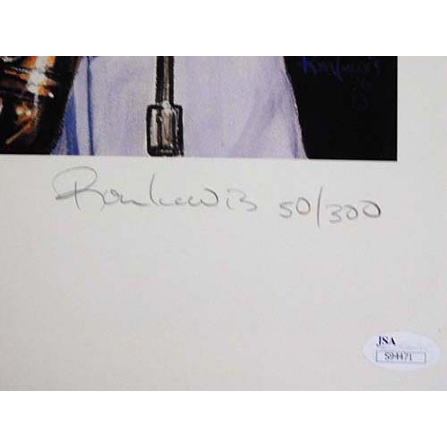 Signed Frank Foster 16x20 Lithograph by Ron Lewis. It is also autographed by Ron Lewis the artist. The Lithograph is limited and numbered to 300. This item is certified by James Spence Authentication (JSA) with sticker affixed to item and matching card. NOTE: There maybe some small dirt marks and dented corners.
