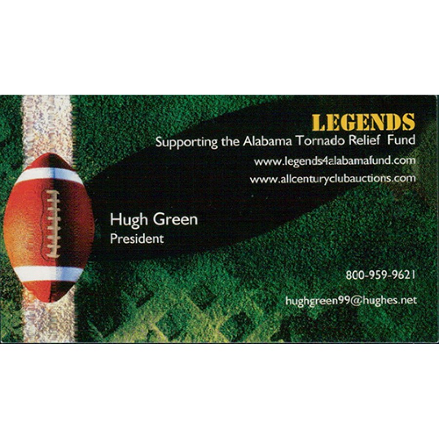 Signed Legends Business Card on the sticker on the back of the card in black sharpie. This is numbered to 250. The signed card was for Alabama Tornado Relief Fund.