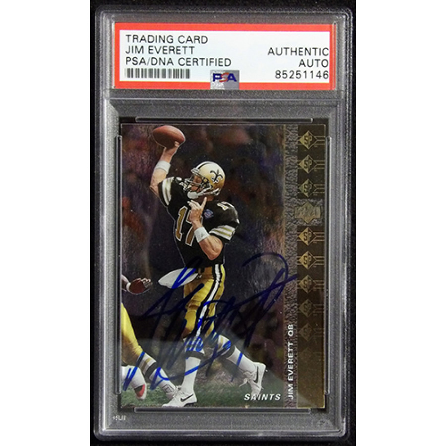 Signed Jim Everett New Orleans Saints 1994 Upper Deck SP Card #176 in blue sharpie. This item is certified by Professional Sports Authenticator (PSA) encapsulated.