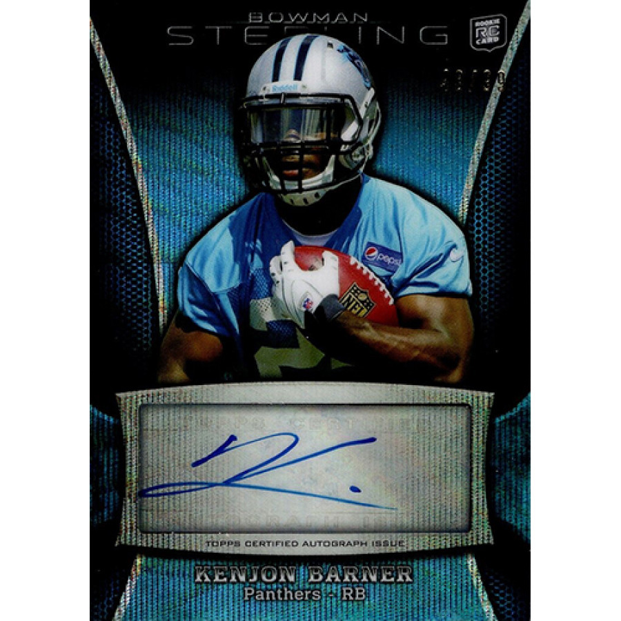 Kenjon Barner Carolina Panthers Signed 2013 Bowman Sterling Football Card #BSA-KB. This is numbered 48 of 99.