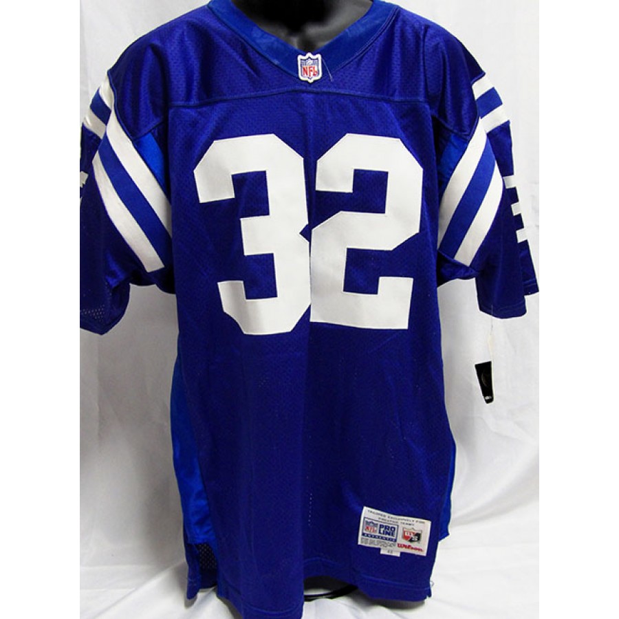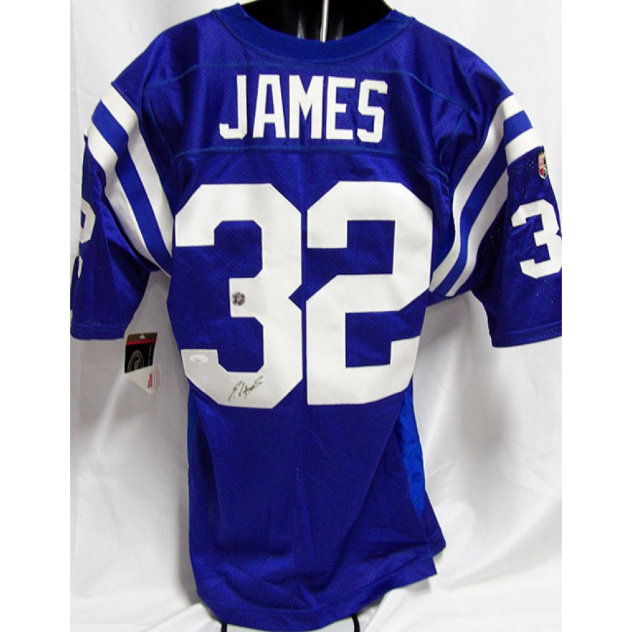 Signed Edgerrin James Indianapolis Colts Wilson authentic jersey size 48 in gold ink. This item has been certified by James Spence Authentication (JSA) and will come with a sticker on the item and matching card.