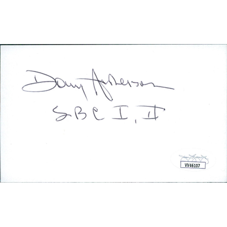 Signed Donny Anderson 3x5 Index Card in black ink. This item has been certified by James Spence Authentication (JSA) with sticker on item and matching card.