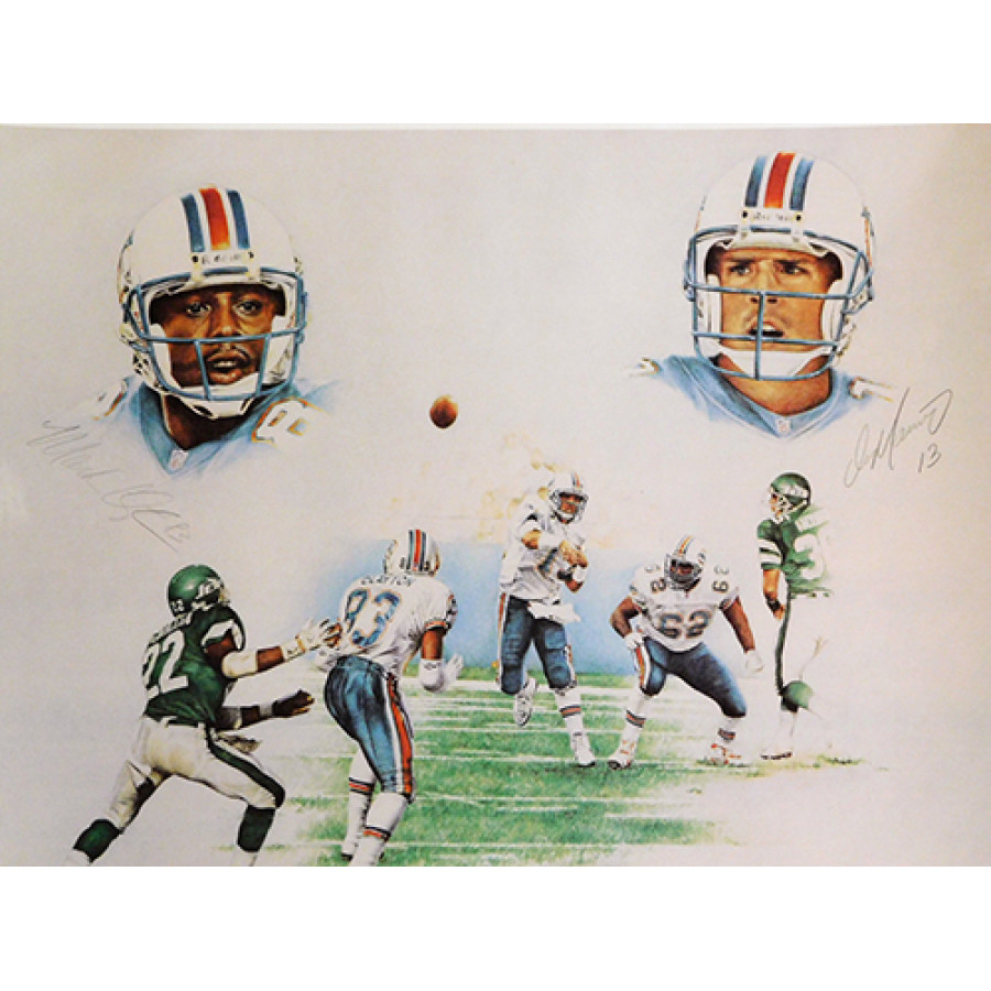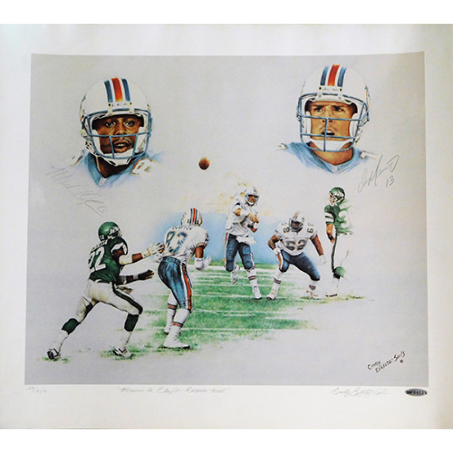 Miami Dolphins Dan Marino and Mark Clayton Signed Lithograph UDA Authenticated