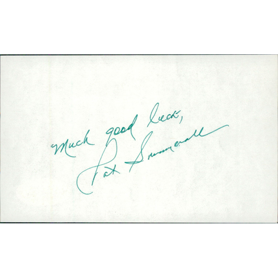 Signed Pat Summerall 3x5 Index Card in green ink. This item has been certified by James Spence Authentication (JSA) with sticker on item and matching card.