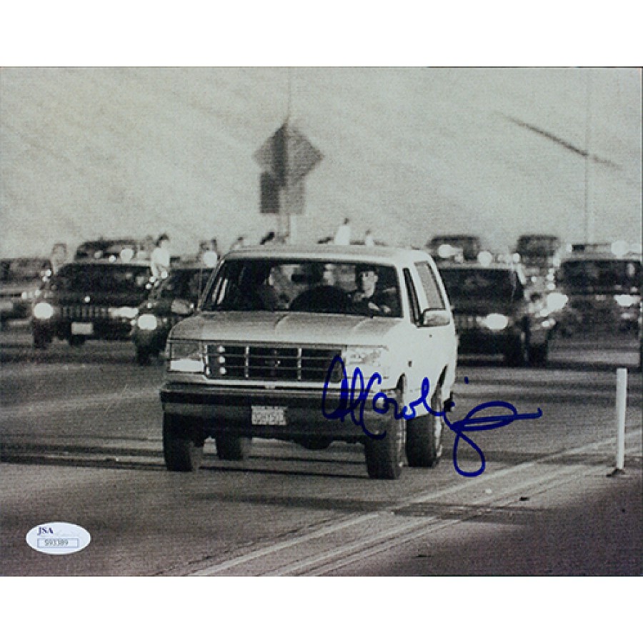 Signed Al Cowlings driving OJ Simpsons white Bronco on that infamous day 8x10 glossy finish photo in blue sharpie. This item has been certified by James Spence Authentication (JSA) with sticker affixed to item and matching card.