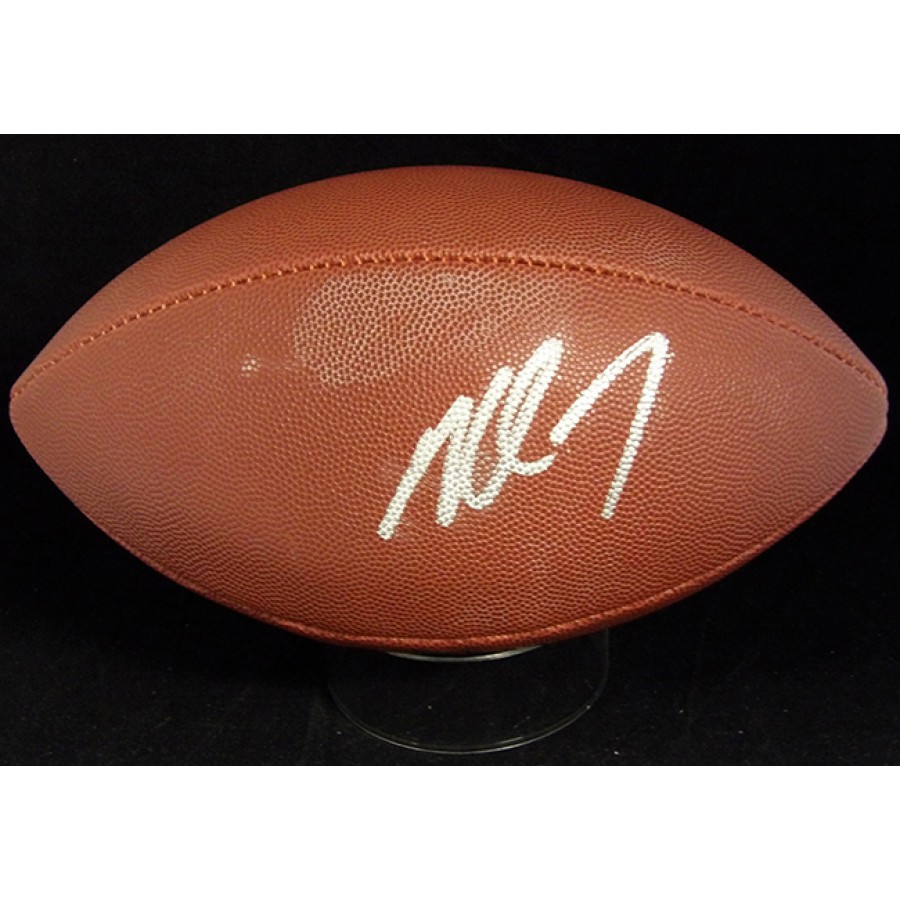 Signed Michael Vick Wilson MVP Tackifield full size football in silver sharpie. There is some smudging of the signature. This item has been certified by James Spence Authentication (JSA) with sticker affixed to item and matching card.