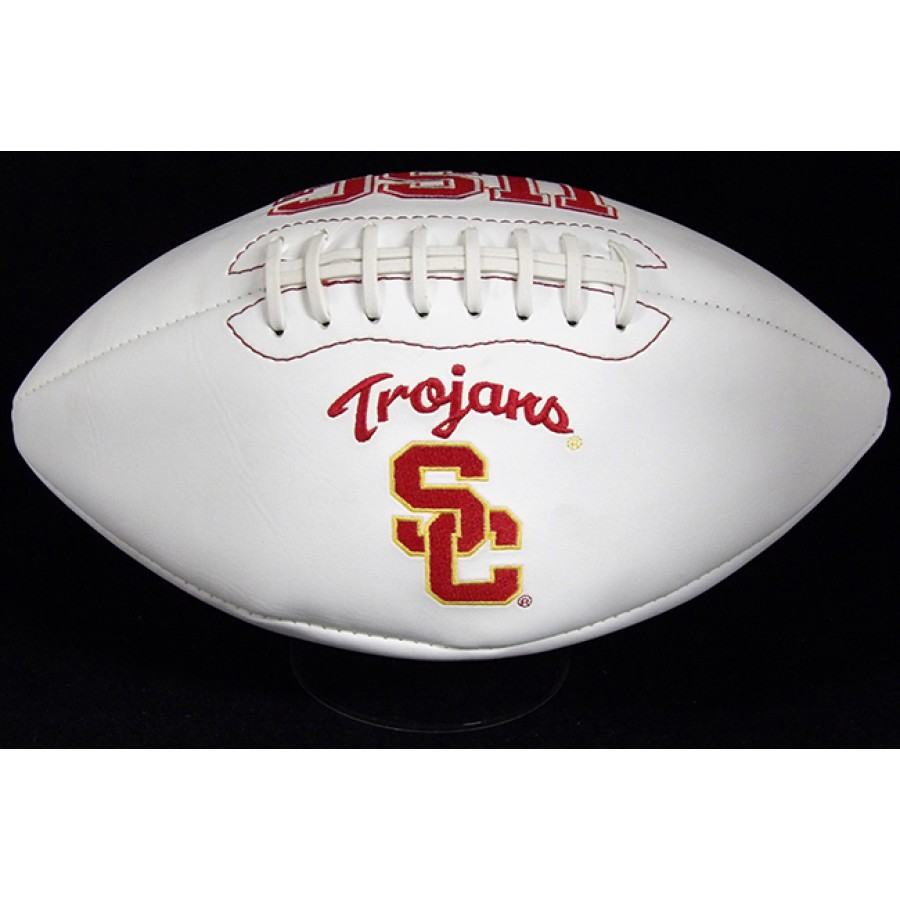 Signed Troy Polamalu USC Trojans Logo White Panel Full Size Football in black sharpie. This item has been certified by James Spence Authentication Service (JSA) with sticker affixed to item and matching card.