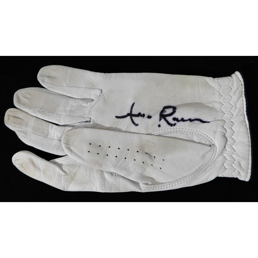 Signed Anna Rawson Callaway used golf glove in black sharpie. This item has been certified by James Spence Authentication (JSA) with sticker on item and matching card.