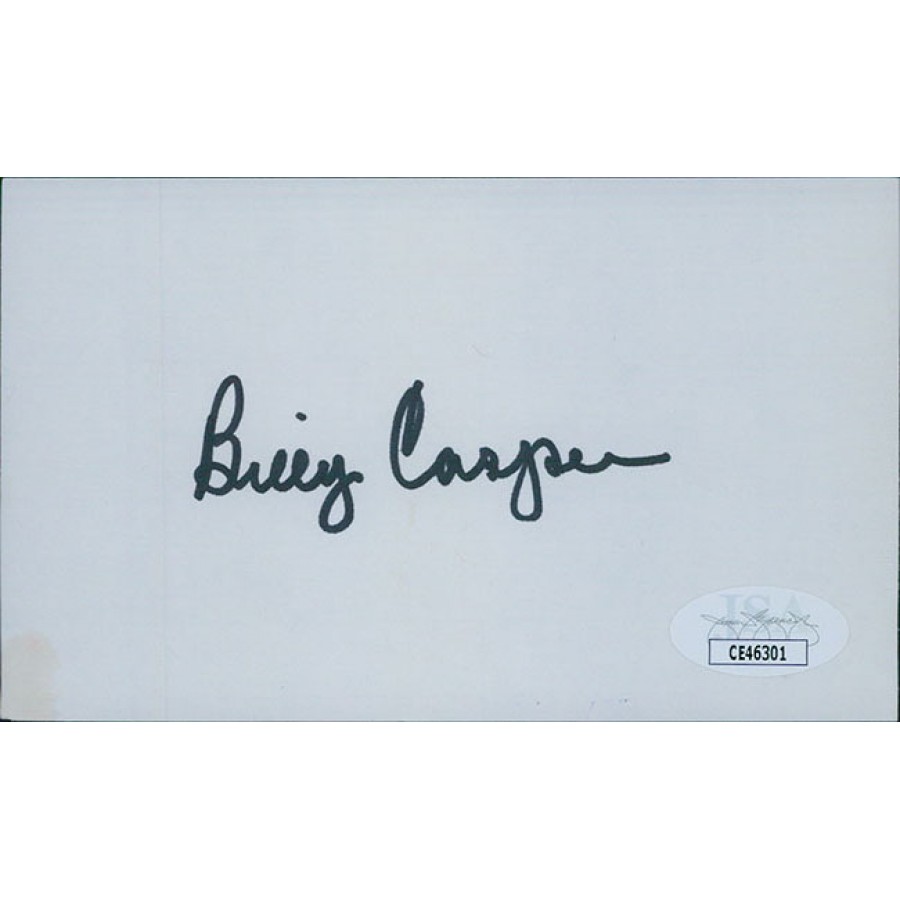 Signed Billy Casper 3x5 index card in black sharpie. This item has been certified by James Spence Authentication (JSA) with sticker affixed to item and matching card.