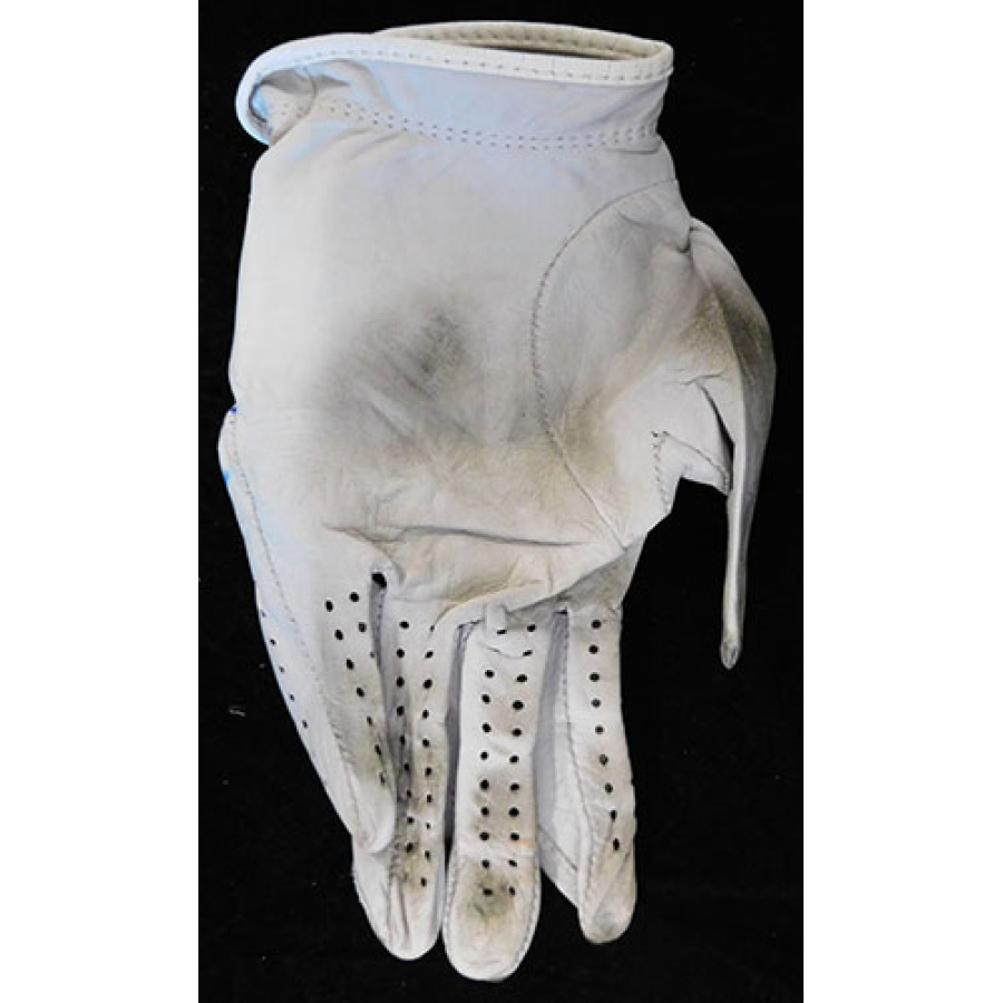 Signed Christina Kim Titleist worn glove in blue sharpie. This item has been certified by James Spence Authentication (JSA) with sticker on item and matching card.