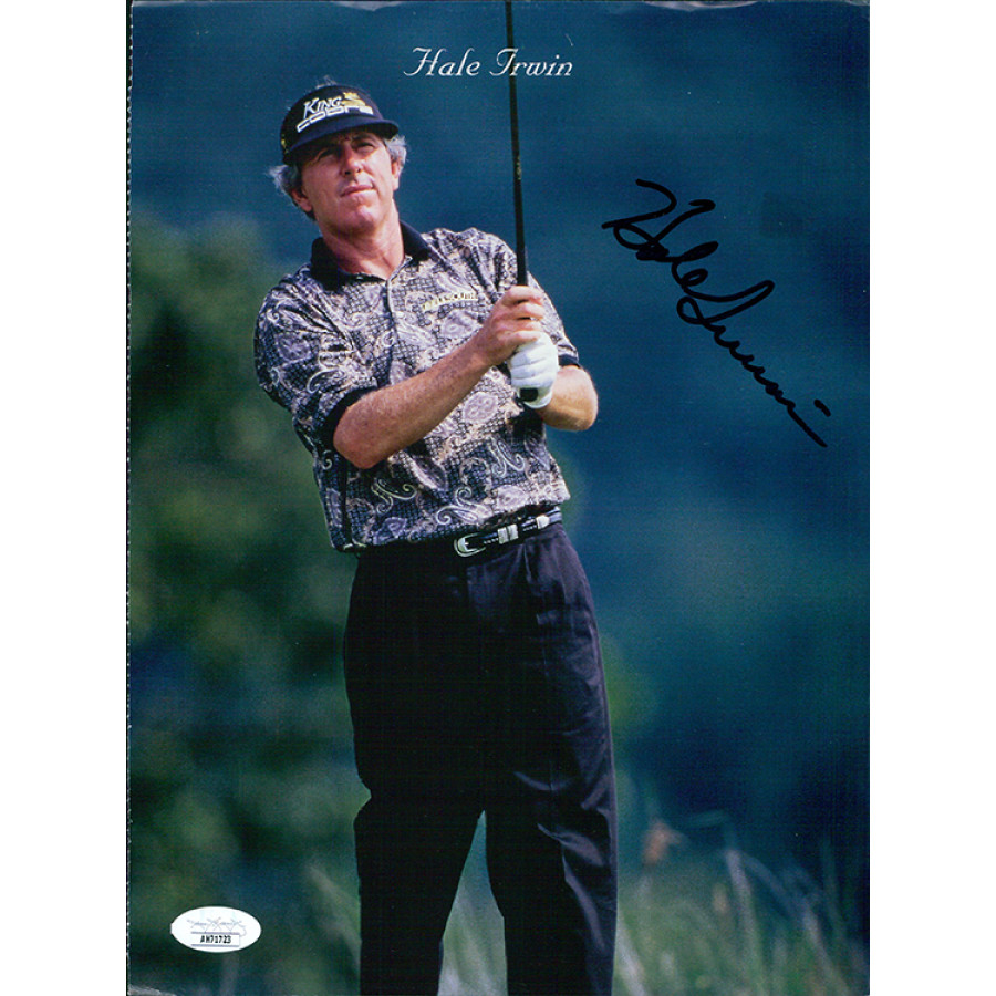 Signed Hale Irwin 8x11 cut magazine page photo in black sharpie. The page has kinks and light creases. This item has been certified by James Spence Authentication (JSA) with sticker affixed to item and matching card.