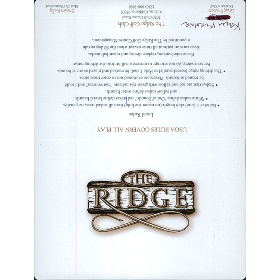 Kelli Kuehne LPGA Golfer Signed The Ridge Golf Club Scorecard JSA Authenticated